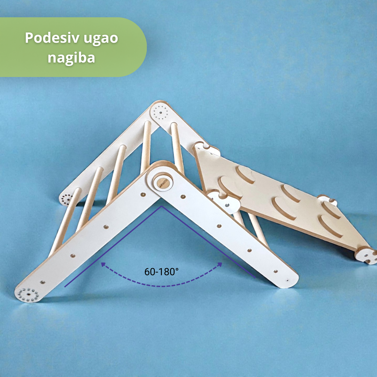 Predstavljamo vam novu Smartwood Montessori penjalicu – Pikler triangle sa dodatnom dvostranom daskom.